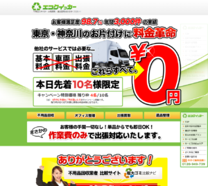 東京や神奈川で、不用品の片付けをしてくれるところを探しているなら、エコクイッカーというサービスがあります。運営元は横浜市に本社を構え、古物商許可を持つ「株式会社MFS」という企業で、出張買取から遺品整理まで対応可能です。顧客満足度も98.7%と評判も良く、年間3000件のサービス実績を誇っています。