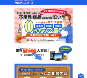 「片付けマスターズ」は安くて速くて丁寧な作業を提供する業者ですが、安いに着目すると他の回収業者よりも見積もり金額が少しでも高かった場合はすぐに電話相談で対応をしてくれます。